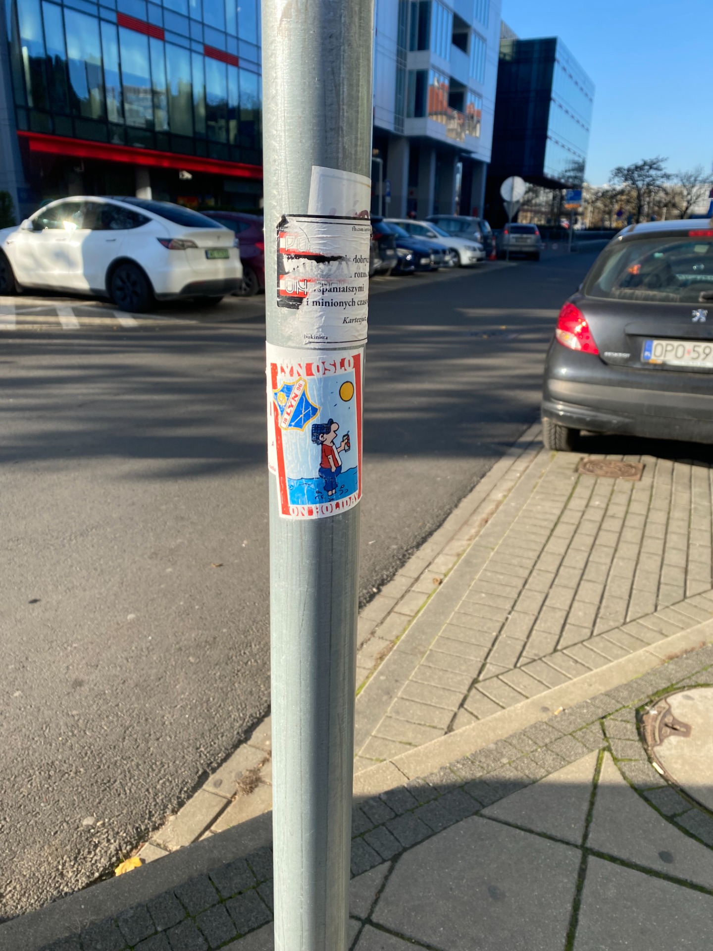 Mye rart å finne på stolper i byer. Reklame for norsk idrettslag i Poznan er kanskje litt eksotisk??